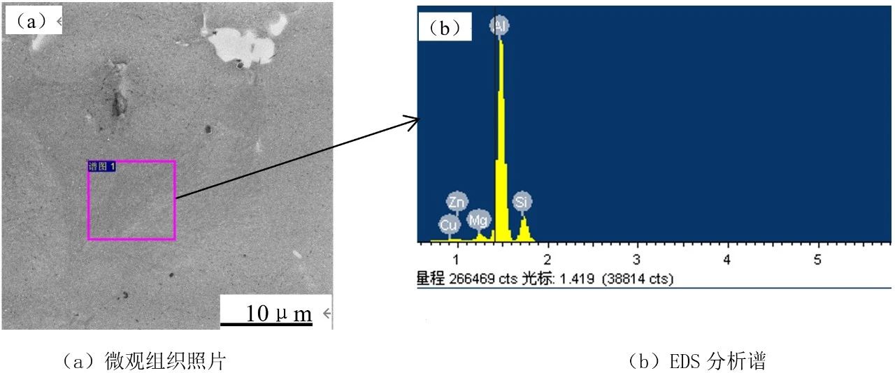 圖5 Al-Si-Mg-Cu合金SEM照片和EDS分析 2.1.2時(shí)效處理對(duì)微觀組織的影響