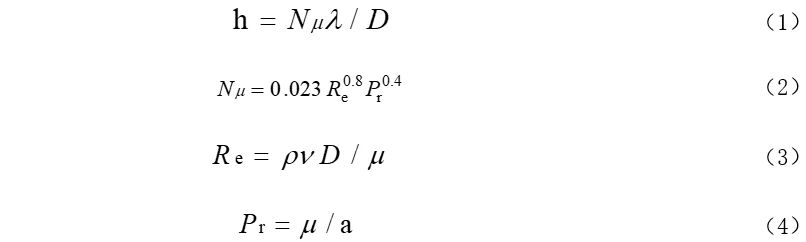 圖3 壓鑄循環流程 2、壓鑄模熱平衡溫度場計算 2.1 ProCAST邊界條件的設置 在壓鑄過程中,要設置多種邊界條件,如模具與模具,模具與外界空氣環境,模具與脫模劑,鑄件與模具,在模擬時都需要考慮它們之間的界面傳熱系數?;谟嘘P研究[7],將模具與鑄件間的傳熱系數設置為1 500 W/(㎡·K),模具與模具間的傳熱系數設為1 000 W/(㎡·K),模具與外界空氣環境間的傳熱系數設為10 W/(㎡·K)。脫模劑一般采用水的傳熱系數,200~1000 W/(㎡·K)。影響水的傳熱系數的主要原因就是水的流速,根據工廠的實際生產中脫模劑的噴涂速度以及有關研究[8],最終將脫模劑與模具間的傳熱系數設為300 W/(㎡·K)。在ProCAST的工藝條件管理器和模擬參數這兩個模塊中進行脫模劑傳熱系數、脫模劑所需要噴涂的表面以及脫模劑在壓鑄循環中噴涂開始和結束的時間設置。 2.2 冷卻水與模具間的傳熱系數 通過調節冷卻水流道內水的流速來改變水的流量,由此來實現冷卻水對模具溫度場的控制,在ProCAST軟件中,不同水流速的冷卻效果可以通過設置不同的傳熱系數來實現。冷卻水和模具間的傳熱屬于無相變強迫對流傳熱,在冷卻水道中流體最常見的流動形式是旺盛紊流。冷卻水與模具之間的傳熱系數可以由以下公式計算得到。