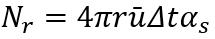 類似地,將晶胚碰撞比擬為一個原子向一個晶胚上的跳躍吸附。假定只要碰撞就可以合并,不會反彈離開,所以晶胚表面可接受新晶胚的位置密度ns=100%=1,則晶胚碰撞形核率Ic可以表達為: