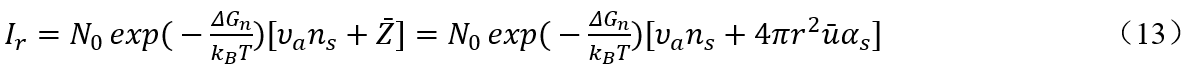 存在流變條件下的形核率Ir(稱為流變形核率)為起伏形核率Ia和碰撞形核率Ic的和,即Ir=Ia+Ic。將式(9)代入式(12)可得流變形核率: