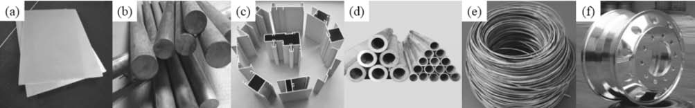 (a)電偶腐蝕;(b)點蝕;(c)絲狀腐蝕;(d)高溫腐蝕 目前常通過合金化與相結構調整來改善鎂合金的耐蝕性能,對于普通鎂合金而言,Fe、Ni、Cu、Co、Sb、Si等元素的添加量需嚴格限制,單個元素添加量應小于0.1wt%,總添加量應小于0.25wt%。同時可添加適量的RE元素在鎂合金表面反應生成致密的RE?O?鈍化膜,在合金內部形成Al 4 RE相,減少Mg17Al12相的濃度,改善鎂合金的耐蝕性。在AZ系列鎂合金中添加適量的Al可增加晶界處β相的數量、濃度,改善耐蝕性能;加入3%~5%的Ca元素可形成MgCa金屬間化合物,提高耐蝕性能;添加適量Zn可形成MgZn固溶體,第二相雜質數量隨之減少,合金耐蝕性得以提高。不同加工工藝下的合金具有不同的相成分與含量,其腐蝕作用機制也有所差異,因此相結構對鎂合金的耐蝕性能影響也較大。采用快速凝固、半固態鑄造結合的熱處理制度均可改變鎂合金的相組分與微觀結構,且合金基體組織更加均勻,內部缺陷數量隨之顯著減少,合金的固溶飽和程度得以提高,可明顯改善耐蝕性能。 3.5?變形鎂合金 鎂合金室溫抗拉、屈服、塑性差,加工難度高,現有強化工藝多以犧牲塑性為代價,且現有鑄錠制坯尺寸偏小,難以實現大規格的生產制備,與鋁合金相比,應用面較窄。與其他加工制備工藝相比,變形鎂合金可在熱狀態下以軋制、擠壓、鍛造、拉拔等工藝方法進行塑性成形,制成板、棒、型、管、絲與鍛件等半成品,用于后續加工裝配,見圖5。常用的變形鎂合金主要為Mg-Mn系、Mg-Al-Zn系與Mg-Zn-Zr系,多數是在AZ系列、ZK系列上由合金化開發而來,如AZ113、AZ151與ZM61等。