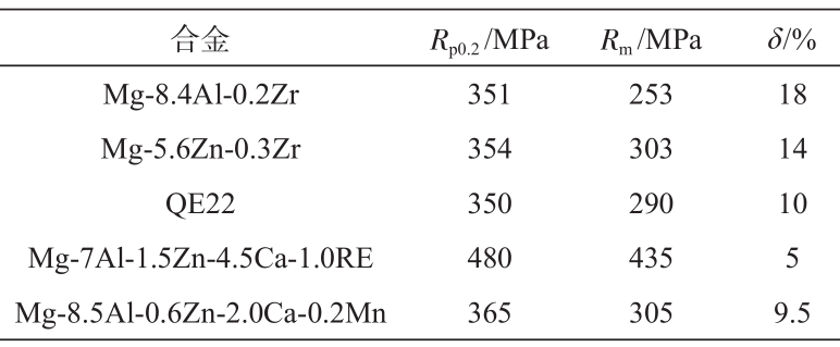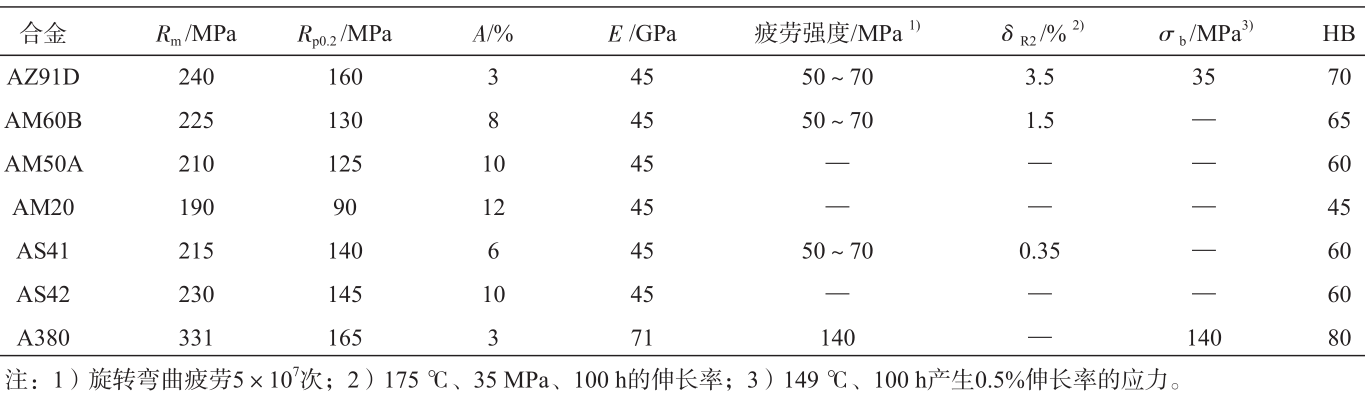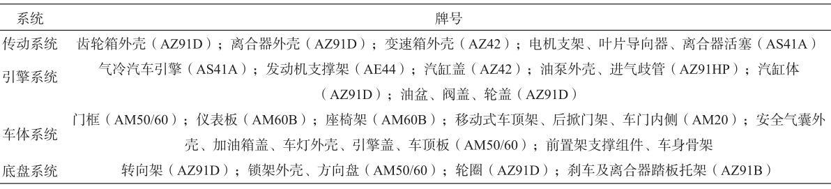 表3 汽車用典型鎂合金牌號