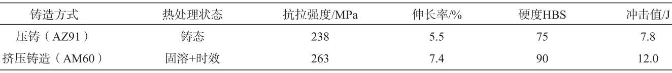 表10 鎂合金壓鑄與擠壓鑄造典型力學性能