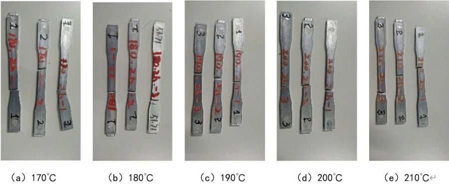 圖10 不同時效溫度下拉伸試片