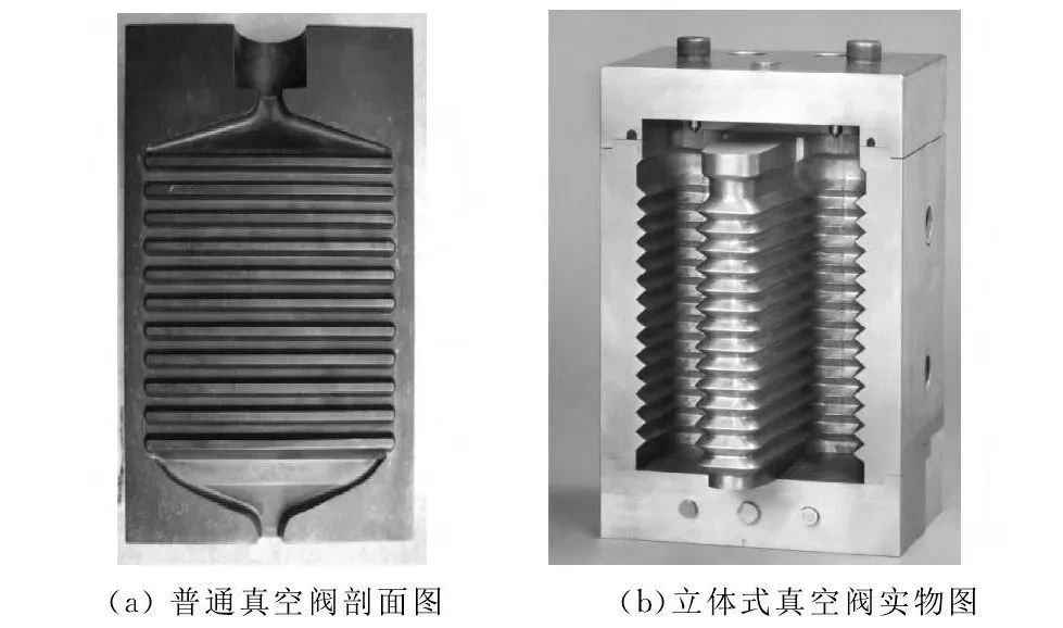 圖1 普通和立體式激冷排氣閥的排氣通道示意圖