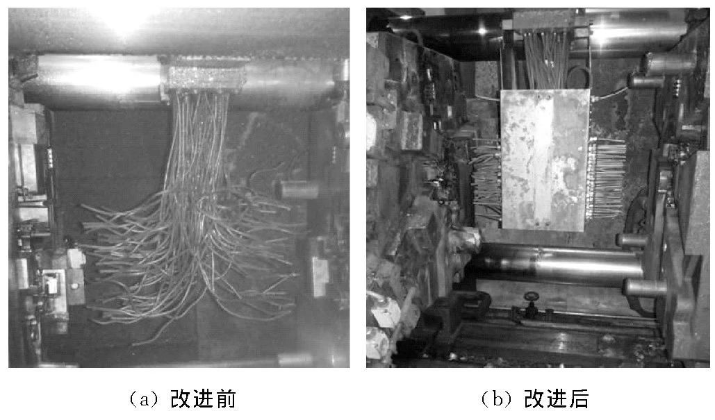圖2 脫模劑噴涂裝置改進前后效果