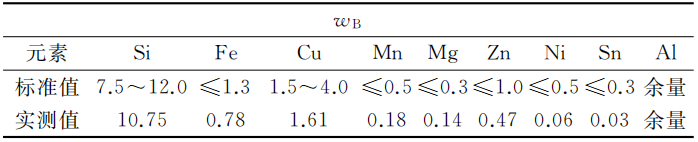 表1 鋁合金ADC11的化學成分(%)