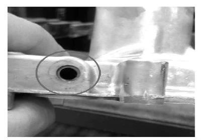 圖15 油道孔加工不過 數(shù)值模擬能為鋁合金壓鑄件的品質(zhì)控制及缺陷改善提供良好的參考依據(jù),縮短了開發(fā)時(shí)間;合理的排氣結(jié)構(gòu)設(shè)計(jì)是改善鑄件內(nèi)部品質(zhì)的重要方法;合理的入料口設(shè)計(jì)不但是鑄件良好內(nèi)部品質(zhì)的重要保障,還是鑄件表面成形良好的重要依據(jù);型芯針合理的加工余量能夠大大減少產(chǎn)品的加工不過,提高成品率;壓鑄機(jī)足夠的鎖模力可以減少飛邊毛刺的產(chǎn)生,是保證鑄件硬度要求的重要手段。