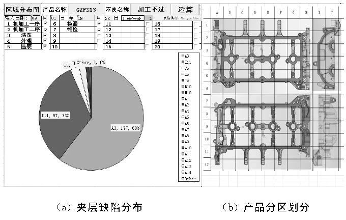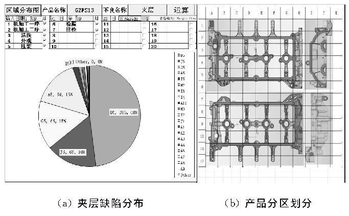 圖7 產(chǎn)品分區(qū)劃分及夾層缺陷分布