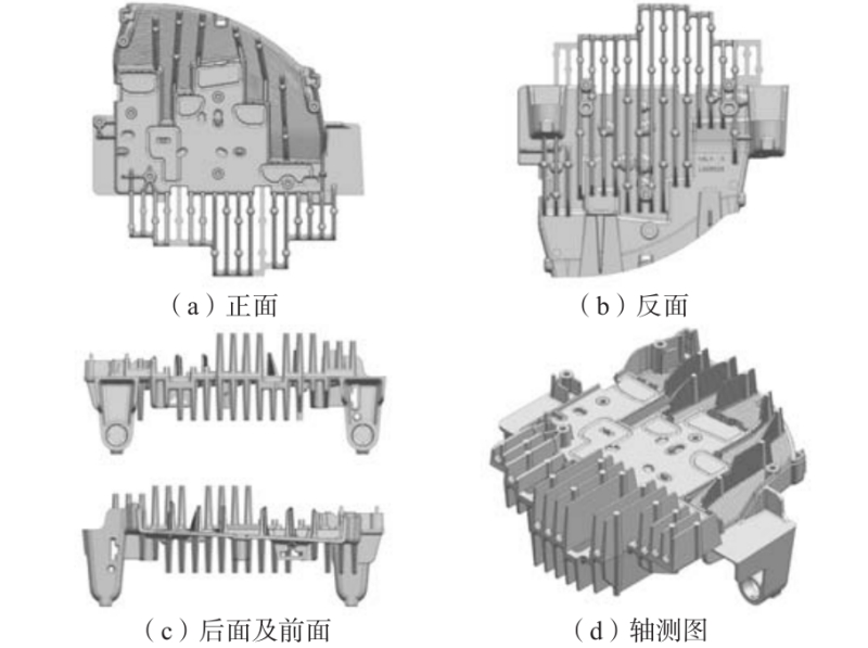 圖13 實(shí)際壓鑄件 5、結(jié)論 設(shè)計(jì)了鋁合金車燈支架鑄件壓鑄工藝及模具,對鑄件充型過程、溫度場以及縮孔縮松缺陷進(jìn)行了CAE分析,并根據(jù)分析結(jié)果優(yōu)化了壓鑄模具設(shè)計(jì),改進(jìn)了澆注系統(tǒng)和排氣系統(tǒng),采用優(yōu)化模具設(shè)計(jì)生產(chǎn)出了滿足質(zhì)量要求的車燈支架鑄件產(chǎn)品。