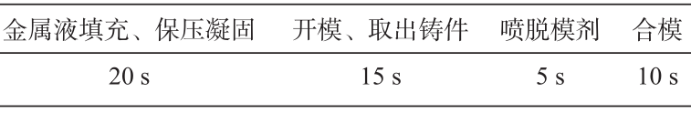 表2 壓鑄工藝參數(shù) 將壓鑄生產(chǎn)周期劃分為四個(gè)階段,其對應(yīng)時(shí)間如表3所示,成形周期為50 s。