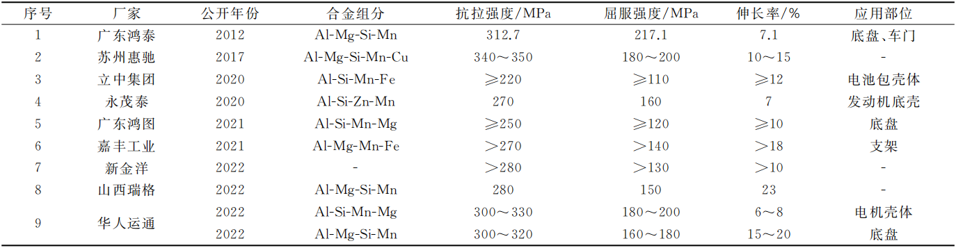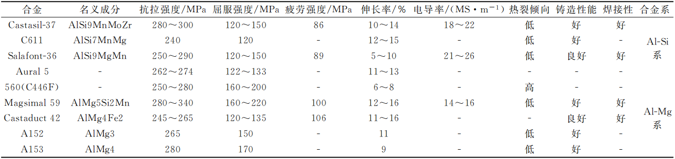 表1 國外典型免熱處理壓鑄鋁合金性能匯總