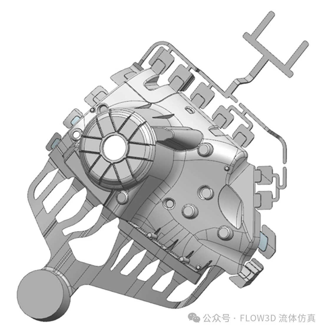 圖4 壓鑄減震塔溢流槽及排氣道 三、模擬分析及工藝優化 澆口由流道底部與鑄件相連,每個澆口的中間位置設計氣泡聚集區。