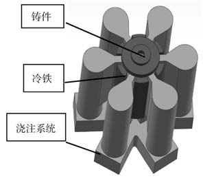 圖1 鑄件示意圖 1.1 澆注系統設計 采用基于FEM的Procast 2018軟件進行理論模擬,設計低壓鑄造工藝、重力澆注工藝對應的最理想澆注方案,并開展對應工藝的產品試制。