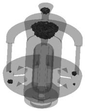 圖5 重力澆注工藝圖 重力澆注工藝模擬結果顯示,金屬液充型平穩,未見明顯紊流等異常現象,凝固順序較為理想,溫度場梯度均勻,實現自下而上凝固順序理念(圖6),疏松結果顯示鑄件部分未見明顯疏松區域(圖7),無孤立凝固相。分析認為,理論上工藝可行。方案工藝出品率約為55%。