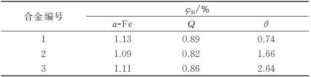 表2 高真空壓鑄Al-10Si-0.5Mn-0.4Mg-xCu合金鑄態金屬間化合物面積分數統計結果