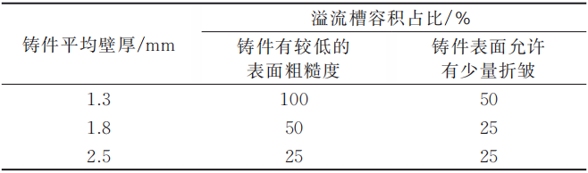 圖4 內澆口的厚度及形狀 根據鑄件的投影面積和壓射所需的壓射比壓計算出的鎖模力,確定此前蓋使用20000kN壓鑄機生產,選用熔杯直徑為?110mm。直澆道的厚度即壓射后料餅的厚度,直接關系到增壓壓力的有效傳遞,如果料餅過薄,壓力傳遞不充分,鑄件的內部品質會降低;如果料餅過厚,浪費材料而且因冷卻不夠常出現爆料,嚴重影響生產節拍。直澆道的厚度一般取熔杯直徑的25%,前蓋的直澆道的厚度取30mm 。橫澆道作用是將金屬液從直澆道順暢地引入內澆口,其形狀、尺寸取決于內澆口的位置、形狀和方向。前蓋采用分支澆道,為防止金屬液在拐角處出現分散,流道的截面積要有規律地減小并增大圓角半徑。橫澆道的結構設計見圖2,橫澆道的截面積取3~4倍內澆口截面積,截面形狀采用梯形,與內澆口采用60°斜面R15mm的圓角過渡。 排溢系統是金屬液充填型腔的過程中排出空氣、容納殘留涂料及最初充填冷合金的通道,對鑄件的品質影響很大。排溢系統主要包括溢流槽和排氣槽,在溢流槽和排氣槽的設計中要充分考慮澆道的位置、結構形式及金屬液的導入方向。設計溢流槽的位置時,首先要考慮將溢流槽放置于金屬液在型腔的充填末端及多股金屬液匯流的位置。根據前蓋的結構特點并結合分支澆道的位置,將溢流槽設計在前蓋澆口對面的最后填充的位置,分區域設計7處溢流槽。同時考慮鑄件內部有兩處大的通孔,此處的型腔結構會阻礙金屬液的流動并改變金屬液的流向,造成局部區域金屬液匯流,嚴重時會出現充填不完整,因此在鑄件中心兩個大孔處設計溢流槽,有利于金屬液的填充及冷卻過程中補縮。