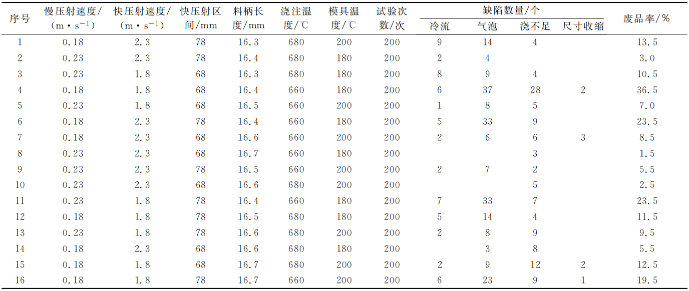 ![]() 原標題:基于齒形溢流槽的鋁合金壓鑄件成形試驗分析 壓鑄充型結束時,模具型腔內剩余的氣體含量直接影響最終成形的鑄件品質。氣體含量越大,越易造成氣孔、縮孔、縮松等缺陷,導致鑄件致密度低,力學性能差。當金屬液快速充填型腔時,為避免型腔中的氣體阻礙金屬液順暢充填而導致壓鑄缺陷,必須將型腔中的氣體及時排出。在壓鑄件的實際生產中,在鑄件易產生缺陷位置附近開設溢流槽可防止氣孔、縮孔缺陷的產生。 一般壓鑄件在充填時,氣體可以從模具分型面處開設的排氣道排出。但當模具分型面的密合程度較好,分型面處開設的排氣道空間有限時,型腔中的氣體不能及時排出,此時必須設置溢流槽。溢流槽能排除型腔中的氣體,儲存混有氣體、涂料、殘渣和冷污金屬液的冷料。因此采用合理的溢流槽能迅速引出型腔內的氣體,增強排氣效果,有效控制和調節金屬液充填流態,防止金屬液局部產生渦流,消除縮孔、縮松、渦流裹氣和冷隔。同時可以調節模具各部位的溫度,改善模具熱平衡狀態,減少鑄件流痕、冷隔和填充不良等缺陷。 對于帶有薄而深筋片的鑄件(如氣冷發動機的汽缸頭、風柵、鼓風機葉輪等)和薄壁殼形且深度大的零件時,盡管生產中也采取了開設溢流槽等措施,但由于受到模具空間的限制,還是會產生大量的氣孔和澆不足等缺陷。這通常是由于高速的金屬液流入深窄模具型腔時,快速的沖擊型腔而形成渦流。高速的金屬液將氣體卷入后,在凝固時將這些來不及排走的氣體包裹在其中,即使這些位置采用局部加壓、開大溢流槽等方法,仍然不能將其中卷入的氣體有效排出。為了減少鑄件在填充過程的各種缺陷,采用在原有模具上直接安裝齒形溢流槽結構,在不改變原有模具結構的基礎上,發現能有效改善充型時型腔內氣體壓力和金屬液充型能力,并有效排出低溫金屬液和浮渣,減少或消除各種壓鑄缺陷。通過多組試驗統計對比分析,得出的優化工藝參數能有效減少壓鑄缺陷。 圖文結果 試驗用材料為ADC12鋁合金,模具模芯材料為H13鋼,模具溫度為240℃,鋁液初始澆注溫度為670℃,模具型腔部分采用油路來控制平衡溫度,控制油路進口溫度為200℃,出口溫度為220℃,其他部分采用冷卻水冷卻,進口和出口溫度分別為40℃和60℃。慢壓射速度為0.22m/s,快壓射速度為2.1m/s,慢壓射區間為272mm,快壓射區間為74mm,產品包括澆口和溢流槽的總質量為0.787kg,壓鑄機合模力為3500kN,壓室直徑為φ60mm,壓室填充率為29.3%,料柄長度為16.3mm,增壓區間長度為10mm。