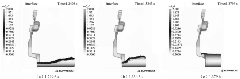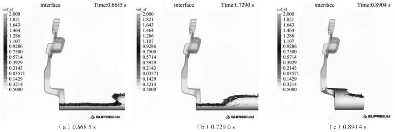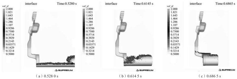 圖5 兩段低速射出模式壓射過程的模擬結果