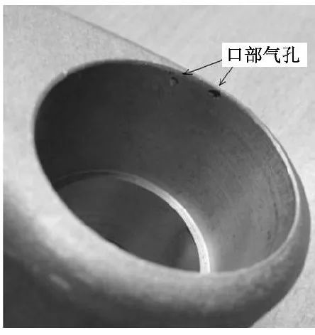 圖5 軸承孔位置氣孔缺陷 采用慢壓射壓鑄工藝的技術要點:1內澆口和排氣槽的截面積要比正常的壓鑄模適當加大;2調整好慢壓射速率,使其能在保證內部及外部品質的前提下以盡量低的速度緩慢壓射;3找準增壓位置轉換點,使金屬液在充滿型腔后立刻增壓,這樣才能保證型腔內氣體最大限度的排出并使鑄件在壓力下補縮;4適當提高合金澆注溫度及模具溫度。