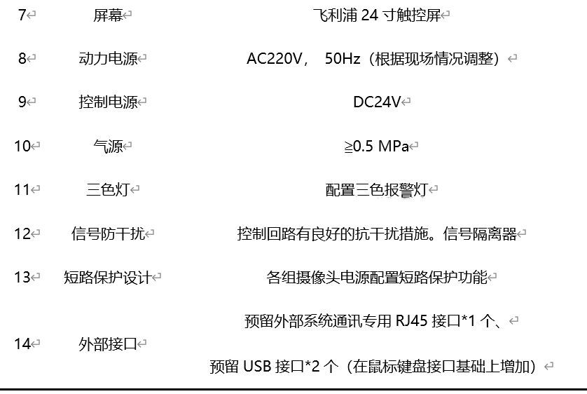 表2 2.3 一體式機柜 為保障模溫監控系統在工業現場的高效運行,系統采用功能齊全的一體式機柜設計,將各類關鍵部件和功能集成于統一結構中,兼顧便捷性和可靠性。機柜的設計細節充分考慮了壓鑄現場的實際需求,具備高性能、高耐用性和易維護性。機柜配備氣源壓力檢測裝置,通過壓力繼電器實時監測氣源壓力,檢測結果直觀顯示在屏幕上。當氣源壓力過低時,系統將觸發故障報警,并停止模溫自動采集,確保設備安全運行。機柜還集成了分水濾氣器,用于高效過濾氣源中的雜質和水氣,并便于維護。人機交互端與設備柜采用一體式設計,結構緊湊,頂部配置吊鉤,便于現場吊裝和運輸。根據現場需求,機柜的外形尺寸可定制,以適應不同的安裝環境。核心控制硬件為研華品牌工控機,預裝64位中文企業版Windows 10系統,配備i5及以上處理器、16GB內存、216GB固態硬盤和1TB機械硬盤,同時支持WIFI遠程操作及升級。交互界面采用飛利浦24英寸觸控屏,為用戶提供友好直觀的操作體驗。供電方面,機柜支持AC220V 50Hz動力電源和DC24V控制電源,可根據現場情況調整。系統設計有信號防干擾措施和短路保護功能,有效提升信號傳輸的穩定性和設備運行的安全性。此外,機柜配備三色報警燈,用于指示系統運行狀態。其他功能包括預留外部系統通訊的RJ45接口及額外的USB接口,滿足多樣化的外部連接需求。設備整體氣源要求不低于0.5 MPa,以確保系統運行的穩定性和可靠性。這款一體式機柜通過高集成度和優化設計,為模溫監控系統提供了堅實的基礎,能夠滿足壓鑄現場復雜環境中的多樣化需求。詳細的功能介紹如表3所示: