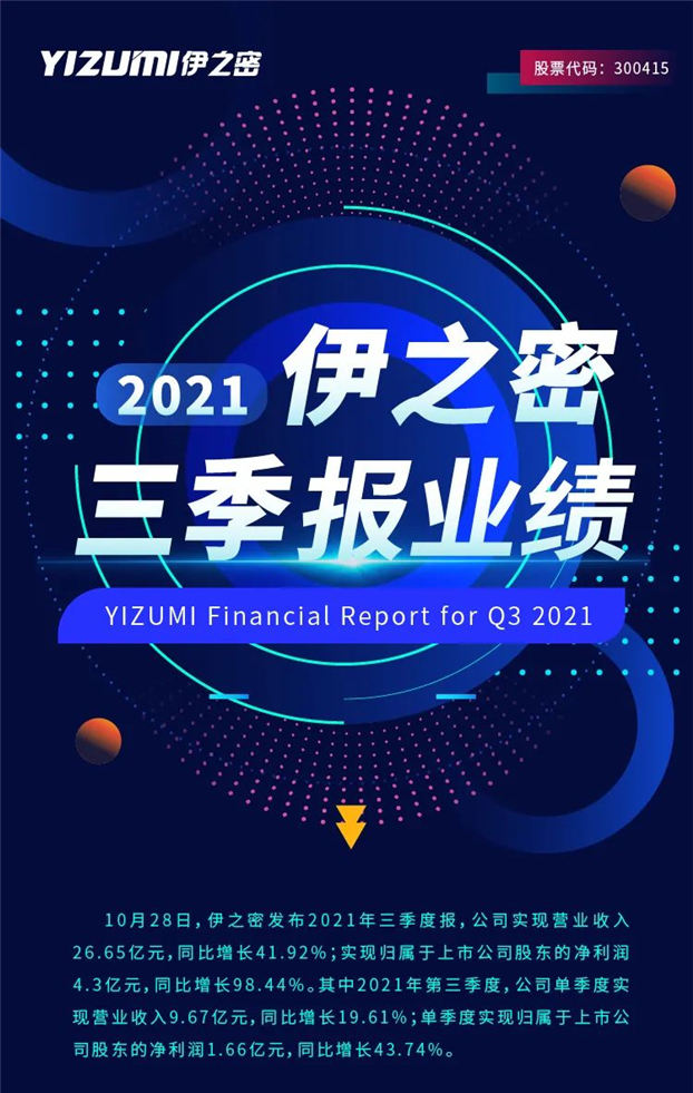 2021三季度報出爐:伊之密營收同比增長41.92%