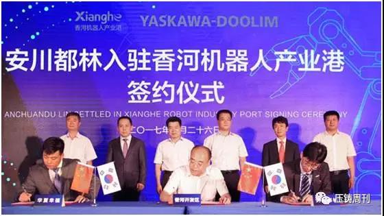 ![]() 壓鑄周刊訊,9月26日,安川都林機器人應(yīng)用設(shè)備(北京)有限公司落戶河北廊坊市香河開發(fā)區(qū)機器人產(chǎn)業(yè)港簽約儀式,在香河規(guī)劃展覽中心報告廳舉行。此乃繼ATI、尼瑪克等世界機器人產(chǎn)業(yè)巨頭之后,又一全球頂尖機器人企業(yè)落戶香河機器人產(chǎn)業(yè)港。 據(jù)了解,安川都林是世界噴涂機器人行業(yè)領(lǐng)先者,其落戶香河機器人產(chǎn)業(yè)港后,將投資建設(shè)安川都林涂裝機器人系統(tǒng)實驗及培訓(xùn)項目。 安川都林機器人應(yīng)用設(shè)備(北京)有限公司成立于2003年7月,位于北京朝陽區(qū),注冊資本200萬元,是日本安川電機與韓國都林自動化的合資公司,其產(chǎn)品噴涂&涂膠機器人在汽車整車產(chǎn)業(yè)、汽車零部件產(chǎn)業(yè)、家電產(chǎn)業(yè)及一般工業(yè)領(lǐng)域,應(yīng)用廣泛。其主要投資方——安川電機創(chuàng)立于1915年,是日本最大的工業(yè)機器人公司。 資料顯示,經(jīng)過三年發(fā)展,香河機器人產(chǎn)業(yè)港已經(jīng)吸引了包括工業(yè)機器人焊鉗巨頭德國尼瑪克、3D打印行業(yè)領(lǐng)先企業(yè)匯天威等在內(nèi)的60多家機器人產(chǎn)業(yè)鏈企業(yè)落戶,形成了從研發(fā)、核心零部件生產(chǎn),到本體制造、系統(tǒng)集成、示范應(yīng)用為一體的機器人產(chǎn)業(yè)集群,躋身“中國產(chǎn)學(xué)研合作創(chuàng)新示范基地”行列,成為京津冀區(qū)域機器人產(chǎn)業(yè)新高地。 |