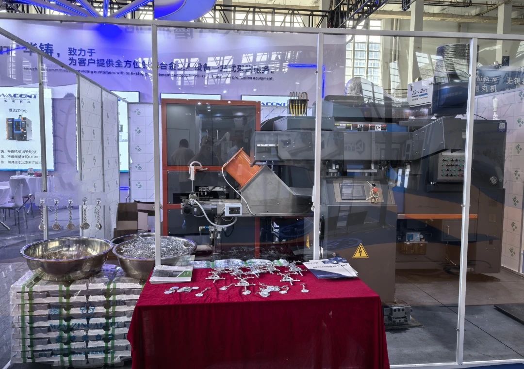 ![]() 2025年4月21-23日,“2025寧波國際鑄造及壓鑄展”在寧波國際會展中心成功舉辦。本屆展會吸引了來自全國各地的鑄造及壓鑄產(chǎn)業(yè)鏈上下游企業(yè)積極參展,集中展示了各企業(yè)的創(chuàng)新產(chǎn)品及技術(shù)成果。 華鑄科技:推介鋅壓鑄一站式設(shè)備采購及全套生產(chǎn)解決方案 在本屆展會上,廣東華鑄模具科技有限公司(簡稱“華鑄科技”)現(xiàn)場展示了一條38T無料咀熱室壓鑄自動化(閉環(huán))產(chǎn)線,以及一臺型號為160T30的多用途標準熱室壓鑄機。 據(jù)了解,這條38T自動化熱室壓鑄生產(chǎn)線是專為黑燈工廠設(shè)計的。它以一臺38T無料咀熱室機為主機,配備了華鑄科技自主開發(fā)的高速取件機、水口自動分離系統(tǒng)、水口料回爐重熔系統(tǒng)以及輸送帶,形成了一條閉環(huán)的全自動化熱室壓鑄生產(chǎn)線。在展會現(xiàn)場,該生產(chǎn)線搭配華鑄科技的“1 + N”模具技術(shù),用于生產(chǎn)鋅合金產(chǎn)品。