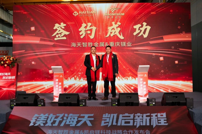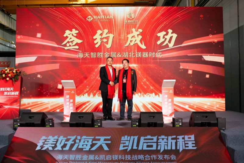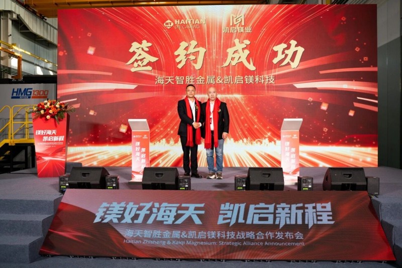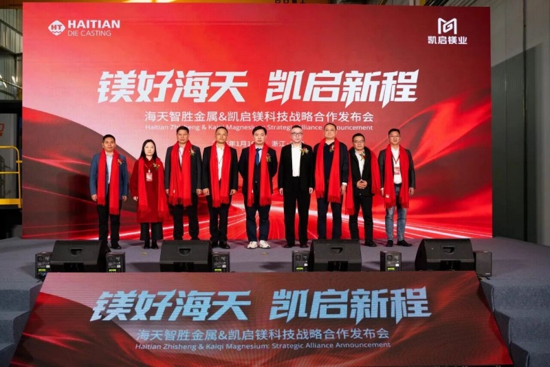 ![]() 1月16日,海天智勝金屬與寧波凱啟鎂科技有限公司(下稱“凱啟鎂科技”)簽署戰略合作協議,雙方將在產能、技術、產業三大維度深化協同。同期,海天智勝金屬還與重慶鎂業、湖北鎂器時代等企業達成多項合作,覆蓋產業鏈關鍵環節,為鎂合金產業高質量發展注入強勁動能。 鄞州經濟開發區管委會副主任勵勇,海天集團總裁張斌,凱啟鎂科技總經理朱國棟,重慶鎂業科技總經理黃勝宇,湖北鎂器時代副總經理楊姣,海天智勝金屬副總經理洪劍文等多方企業高層,以及合作代表、媒體嘉賓等共同見證了這一重要時刻。 戰略發聲,奠定鎂合金產業發展新格局