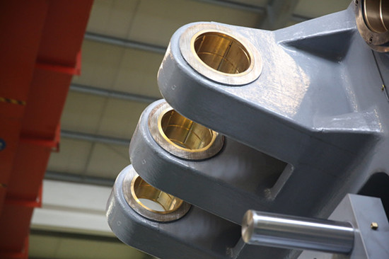 鉸耳孔增加鋼套和銅套,改善機絞磨損 另外,H系列2500T以上的重型壓鑄機都采用HPM的高剛性鎖模機構(gòu),有6根大杠(原本國內(nèi)機都是采用四根大杠受力),3500T以上的模板甚至更是采用鍛鋼材質(zhì),比歐洲、日本的部分機器用料成本更高,更加穩(wěn)定耐用。 “我們的研發(fā)目標是要讓H系列重型機具備世界級的競爭力,以它重新定義中國重型壓鑄機新標準。”黎前虎說道。 為全球市場高端壓鑄件生產(chǎn)商量身定制 隨著新能源車結(jié)構(gòu)件需求越來越多,國內(nèi)重型機市場也快速增長,但對重型機而言,客戶最看重的就是生產(chǎn)穩(wěn)定性和合格率,所以大多龍頭企業(yè)客戶更青睞質(zhì)量更高的進口機。這也給了伊之密一個警示,重型機要定位高端市場。 “也因此,我們才有決心和勇氣消化HPM技術(shù)標準,提升H系列的制造成本,舍得用料,例如重型大杠調(diào)模螺母,我們將原本國內(nèi)機普遍使用鋼材改為按歐洲日本重型機標準使用的特殊銅合金,有效解決了鋼螺母易燒蝕至變形和調(diào)模不動的問題,但光這一項每臺機的成本便高出十幾萬人民幣!”