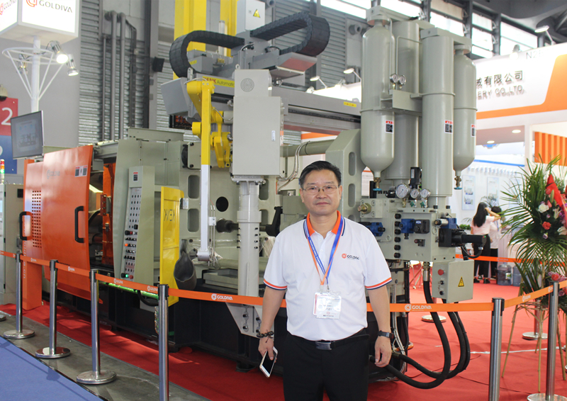 廣東固德威李昌滿先生 在“CHINA DIECASTING 2019中國(guó)壓鑄展”上,廣東順德固德威精密機(jī)械有限公司(下稱“廣東固德威”)落座上海新國(guó)際博覽中心N2館N2B11展位,展示一套高性能冷室壓鑄單元,由固德威GDC500SM冷室壓鑄機(jī),配套震界給湯機(jī)、噴霧取件一體機(jī)。 據(jù)了解,GDC系列是廣東固德威第二代冷室壓鑄機(jī)產(chǎn)品,也是在GW系列基礎(chǔ)上升級(jí)的高性能冷室機(jī)系列,目前擁有從200-2000T多個(gè)款式的鋁、鎂合金高性能冷室壓鑄機(jī),專門針對(duì)航空航天、汽車、通訊等行業(yè)而開發(fā)。