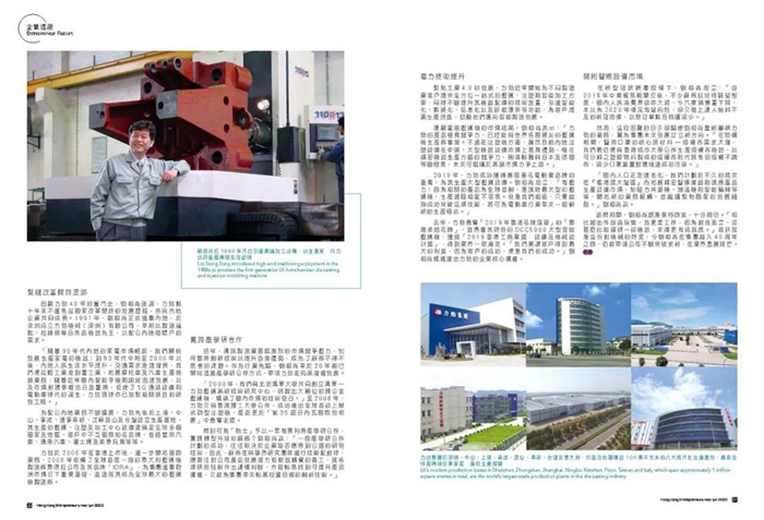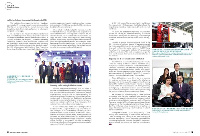 Last year, LK won the “Hong Kong Premier Brand” in the 2019 Hong Kong Top Brand Awards. LKwas also conferred the Equipment and Machinery Design Award for its DCC5000 large-scale intelligent die-casting machinein the 2019 HongKong Awards for Industries. Liu attributes LK’s success to its underlyingmotivation: “We want our customers to get the most benefit because theirsuccess is our success,” he said in the interview.