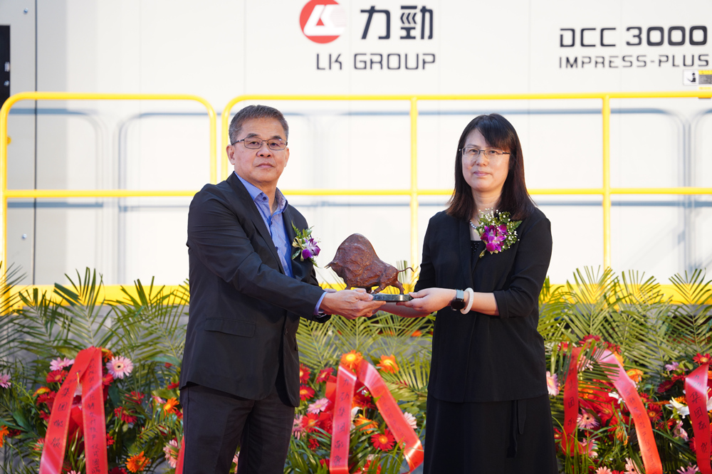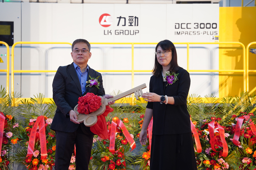 一汽聯合壓鑄董事長洪紳福與力勁集團深圳領威科技有限公司總經理潘玲玲進行設備交接