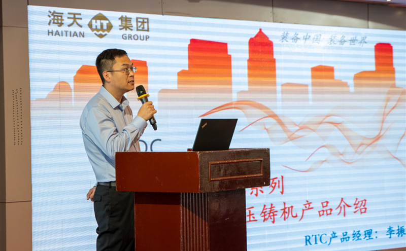 海天金屬產(chǎn)品經(jīng)理李振忠全面講解了壓鑄機原理與配置,及海天金屬獨有的RTC系統(tǒng)(雙閉環(huán)全實時控制壓射系統(tǒng))。