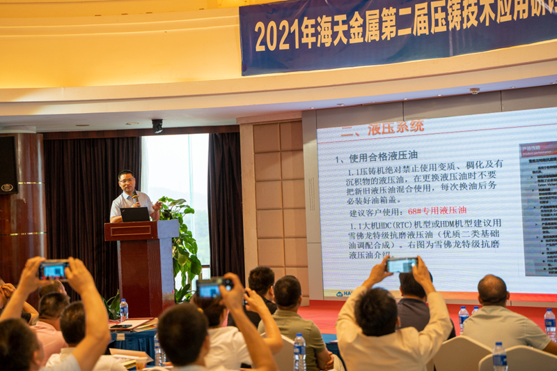 會議內(nèi)容 本次研討會上,海天金屬的技術(shù)專家們?yōu)榭蛻糁v解了《壓鑄技術(shù)應用與案例分析》、《模具基礎(chǔ)知識與維護保養(yǎng)》、《HDC系列RTC系統(tǒng)壓鑄機產(chǎn)品介紹》、《壓鑄機周邊設備配置分析》和《壓鑄機預防性維護保養(yǎng)》。