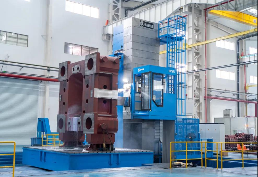 捷克斯柯達160T數(shù)控落地鏜銑床 美利信科技于今年4月已向海天金屬采購了一套8800T壓鑄島,此次又再購買了2套6600T和2套8800T超大型壓鑄機。樂曉東先生表示:“美利信科技是首家采購海天金屬超大型壓鑄機的企業(yè),目前有多臺3500T、4500T壓鑄機在美利信科技重慶工廠運行良好、穩(wěn)定可靠、故障率低。接下來,我們將與美利信科技合作研發(fā)10000T以上壓鑄機。” 在超大型壓鑄機方面的布局,樂曉東先生深謀遠慮,又極具膽識和魄力,早在2018年就開始規(guī)劃引進超大機型的生產(chǎn)設(shè)備。在海天金屬新基地,一臺進口捷克斯柯達160T數(shù)控落地鏜銑床,正在加工一塊“高4.5m x寬4.2m x厚1.5m”、重120噸的8800T壓鑄機模板。據(jù)介紹,此160T落地鏜銑床,是2018年6月海天金屬斥巨資進口的設(shè)備,前不久才完成安裝調(diào)試并投入使用。