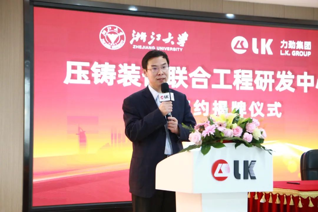 力勁集團CEO劉卓銘先生致辭 劉卓銘先生表示,浙江大學是馳名中外的“雙一流”高校,建校歷史超過120年。力勁與浙大合作多年,取得了眾多成果。現在再度攜手,共建壓鑄裝備聯合工程研發中心,共同致力當前國家急需的高端壓鑄智能裝備的研發與應用,提升國家制造業實力,深感榮幸。 “希望能夠在此次合作的基礎上,進一步推進產學研用一體化,創新驅動發展,為國家科技產業戰略發展目標的實現,為壓鑄產業發展,貢獻力量,創造價值。”