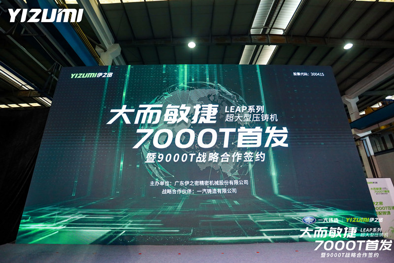 原標題:7000T壓鑄機首發、9000T簽約、超大機型工廠動工,伊之密跨步邁進“大壓鑄時代” 昨日(5月26日)下午,伊之密“大而敏捷LEAP系列超大型壓鑄機7000T首發暨9000T戰略合作簽約儀式”在佛山順德舉行。政府領導、行業專家、客戶代表應邀出席本次活動,共同見證伊之密LEAP7000T超大型智能壓鑄機全球首發,見證伊之密與一汽鑄造建立9000T壓鑄整體解決方案的戰略合作關系。