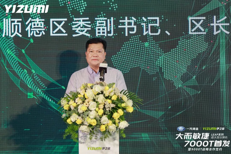 順德區委副書記、區長區柱明先生致辭 順德區委副書記、區長區柱明表示:“順德裝備制造業基礎雄厚,高端裝備、智能裝備制造領域在廣東省乃至全國具有舉足輕重的地位,伊之密是我區高端裝備制造的龍頭企業,是行業領域的標桿企業,此次與一汽鑄造合作開展9000T重要零部件壓鑄工藝研發,強強合作,優勢互補,共同攻克核心技術難題,順德區委、區政府將一如既往地大力支持伊之密科技創新,引領我區高端裝備制造業邁出新臺階,實現高質量發展。”