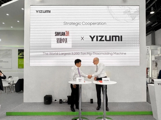 ![]() 當地時間6月14日,德國國際鑄造技術專業展會暨技術論壇GIFA (下簡稱:GIFA)進入第三個參展日。 在德國杜塞爾多夫國際展覽中心伊之密(展位號:11A42)活動區,寧波星源卓鎂技術股份有限公司(以下簡稱:星源卓鎂)與伊之密簽署戰略合作協議,訂購一臺3200噸半固態鎂合金注射成型機,這是目前全球最大的半固態鎂合金注射成型機。 這也是繼2021年12月,星源卓鎂與伊之密簽訂合約,訂購兩臺半固態鎂合金注射成型機UN650MGII和UN1500MGII之后,時隔18個月,雙方再次達成深度合作。