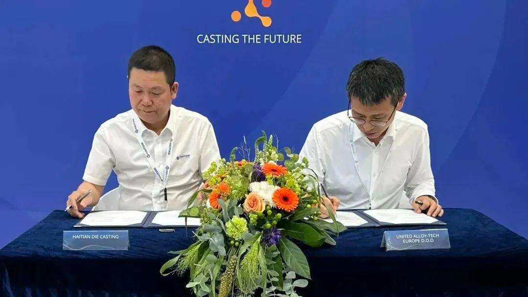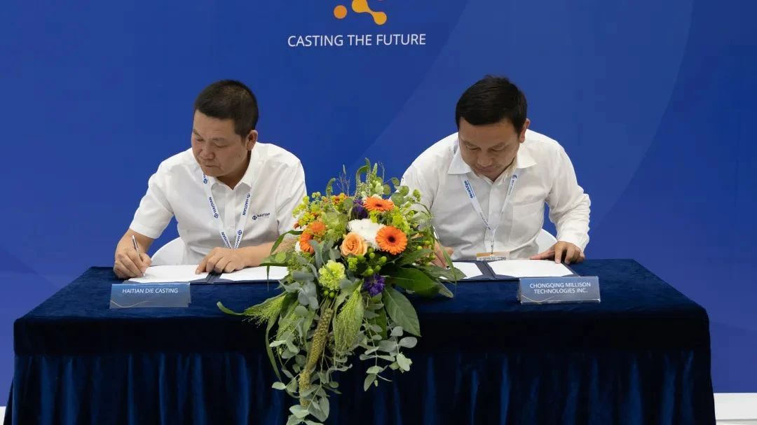 GIFA 2023,海天金屬與精確實業(yè)(UATE)、日本OKAYA & Co, LTD、美利信科技等三家國際知名企業(yè)達成戰(zhàn)略合作協議 據了解,精確實業(yè)是全球知名汽車零部件廠家敏實集團旗下成員,后者為全球30多個國家的60多個汽車品牌提供服務。OKAYA & Co, LTD則是一家總部位于日本的世界知名貿易公司,在長期與日本汽車制造商的合作中有著豐富的經驗。未來,海天金屬將與各方將利用市場協同效應和規(guī)模化資源,共同開拓更廣闊的國際市場。 而海天金屬與重慶美利信科技簽署全球戰(zhàn)略合作協議,在GIFA這個國際舞臺向全世界宣布:雙方將聯合開發(fā)合模力20000T超大型壓鑄機,并在大型及超大型一體化壓鑄領域展開研發(fā)技術合作,實現成果共享。 ??大型及一體化壓鑄,千載難逢歷史機遇 隨著新能源汽車、汽車“輕量化”趨勢加速向前推進,一體化壓鑄正逐步被全球整車廠認可。海天金屬充分把握市場需求,先后推出7000T、8800T超大型壓鑄機,打造配套2500T、3500T大型壓鑄島和8800T超大型壓鑄島的全球應用服務中心,切實助力行業(yè)發(fā)展,填補一體化上下游產業(yè)空缺,為客戶提供全套解決方案、一體化試模等服務。