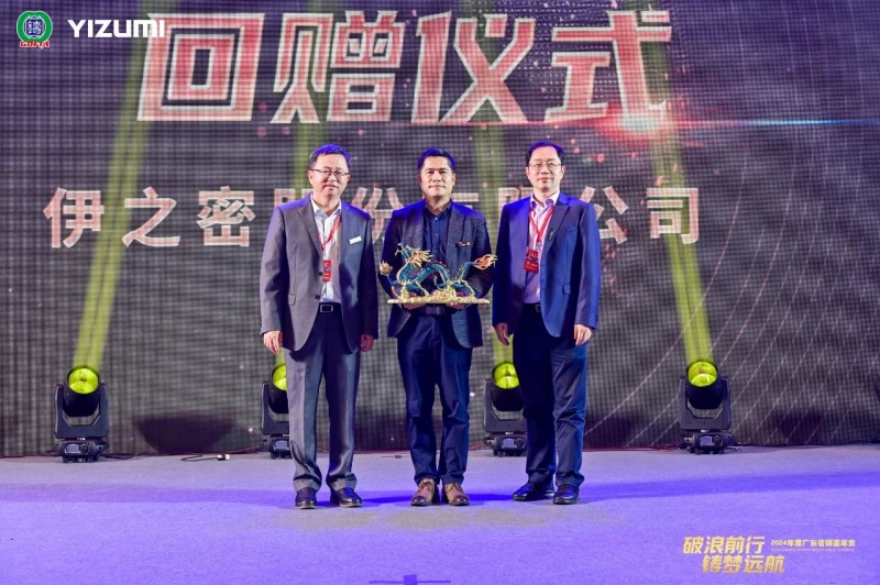 他表示:“創(chuàng)新對(duì)一個(gè)國(guó)家、一個(gè)民族來(lái)說(shuō),是發(fā)展進(jìn)步的靈魂和不竭動(dòng)力,對(duì)于企業(yè)來(lái)講,是尋找生機(jī)和出路的必要條件。未來(lái),我將帶領(lǐng)團(tuán)隊(duì)立足于伊之密的戰(zhàn)略發(fā)展規(guī)劃,特別在‘高端化、數(shù)智化、綠色化’方面不斷研發(fā)與掌握國(guó)際領(lǐng)先的關(guān)鍵核心技術(shù),從而提升產(chǎn)品核心競(jìng)爭(zhēng)力,助力伊之密成為成型裝備領(lǐng)域的世界級(jí)企業(yè),為壓鑄行業(yè)注入源源不斷的發(fā)展動(dòng)力,讓整個(gè)行業(yè)的發(fā)展更上一層樓!” 晚宴上,還舉行了贊助單位回贈(zèng)儀式,作為答謝晚宴冠名贊助單位,伊之密獲贈(zèng)精美工藝品。這些禮品的頒發(fā)不僅是對(duì)贊助單位的肯定,更是對(duì)整個(gè)行業(yè)未來(lái)發(fā)展的期許。