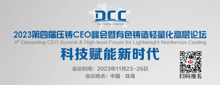 由中國鑄造協(xié)會主辦的“2023第四屆壓鑄CEO峰會暨有色鑄造輕量化高層論壇”即將于11月23-26日在廣東珠海海泉灣維景國際大酒店舉辦。