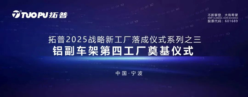 5月5日,寧波拓普集團股份有限公司,為2025戰略新工廠:鋁副車架第四工廠舉行了隆重的奠基儀式,相關領導出席并致辭。