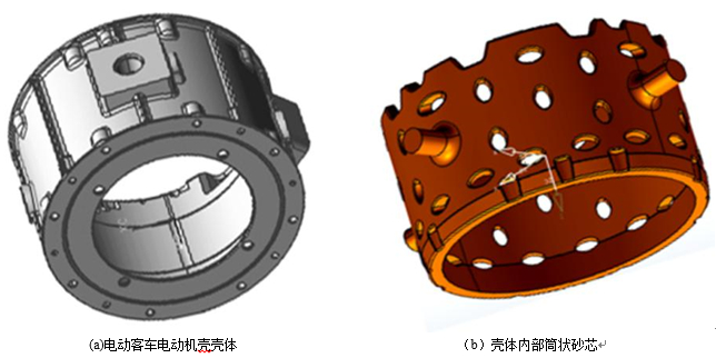 針對電動客車電動機殼體直徑較大、內壁筒狀水套范圍廣和壁厚不均勻等特點,分析了水冷機殼的復雜結構及筒狀砂芯對鋁合金低壓鑄造順序凝固的影響。