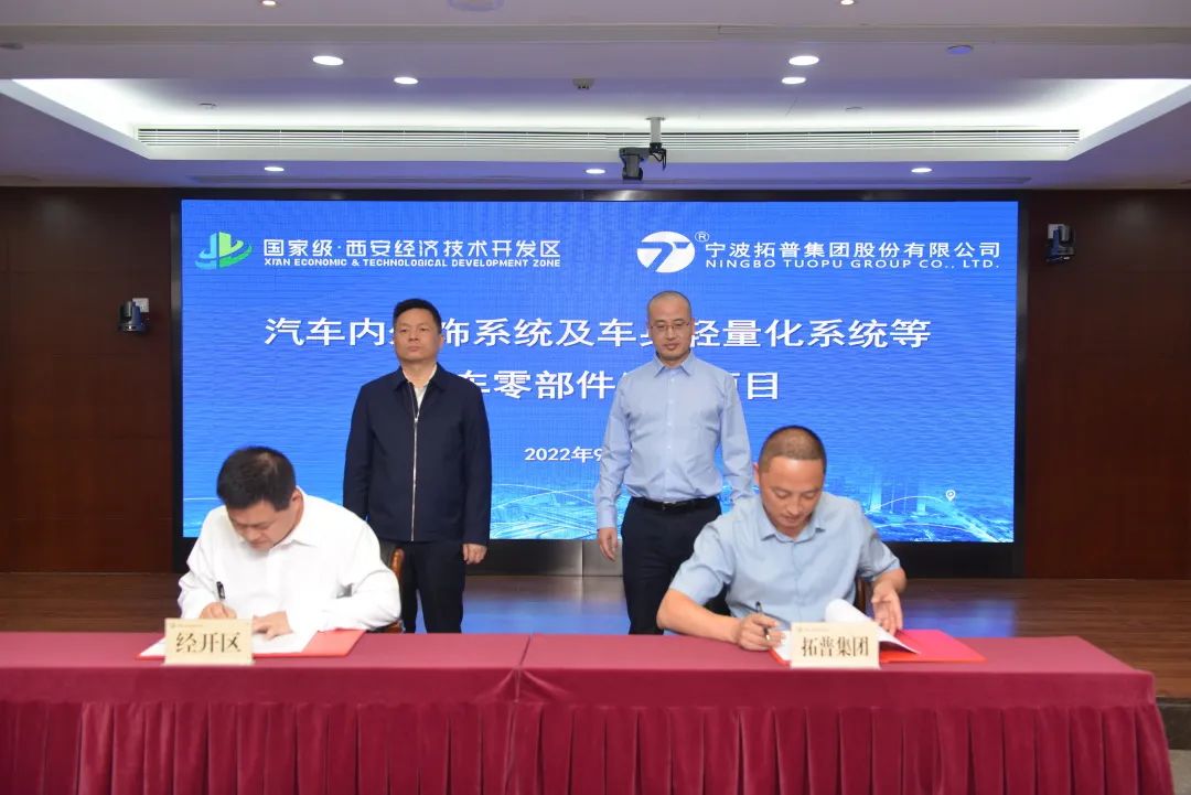 9月23日,西安經濟技術開發區與寧波拓普集團股份有限公司簽訂汽車內外飾系統及汽車輕量化系統等零部件生產項目投資合同協議。