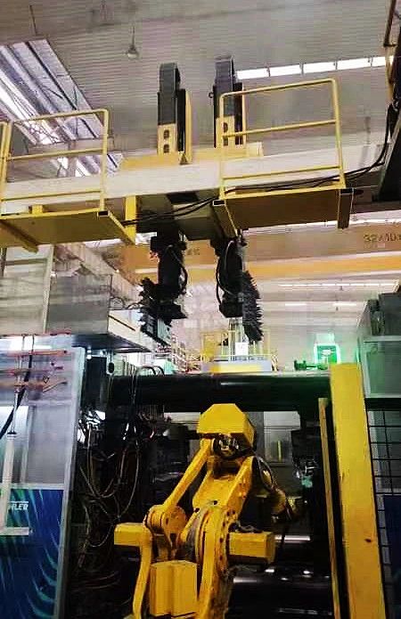 日昭智能的雙五軸大型龍門式CNC去毛刺工作站,專門針對7000T以上大型一體化壓鑄件打磨去毛刺而開發,適配于7000T-20000T超大型壓鑄島。