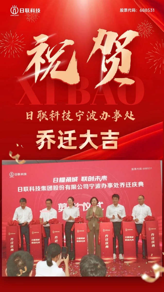 2025年10月18日,日聯科技集團股份有限公司寧波辦事處喬遷慶典在熱烈的氛圍中圓滿舉行。