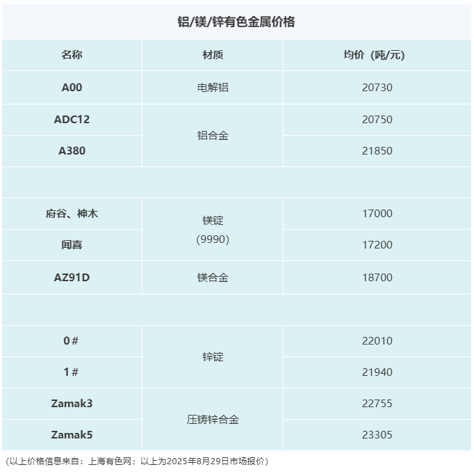 壓鑄早報2025/9/1星期一