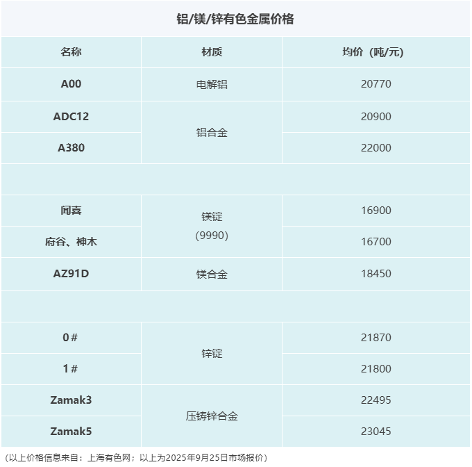 壓鑄早報2025/9/26星期五